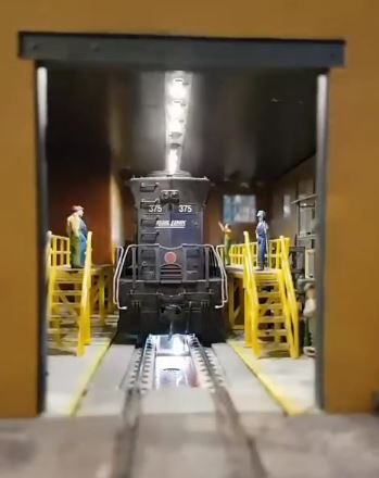 This enginehouse is a hub of activity (and there’s some snappy music too!). Poster @flo.rh_85 recently shared this standout structure on our Facebook page. It features interior lighting that mimics the flickering of florescent lights turning on.