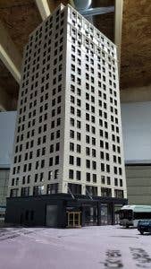 This new building will be a downtown showpiece on Bradley Dryer's new layout, and is kitbashed from several Walthers Cornerstone kits.