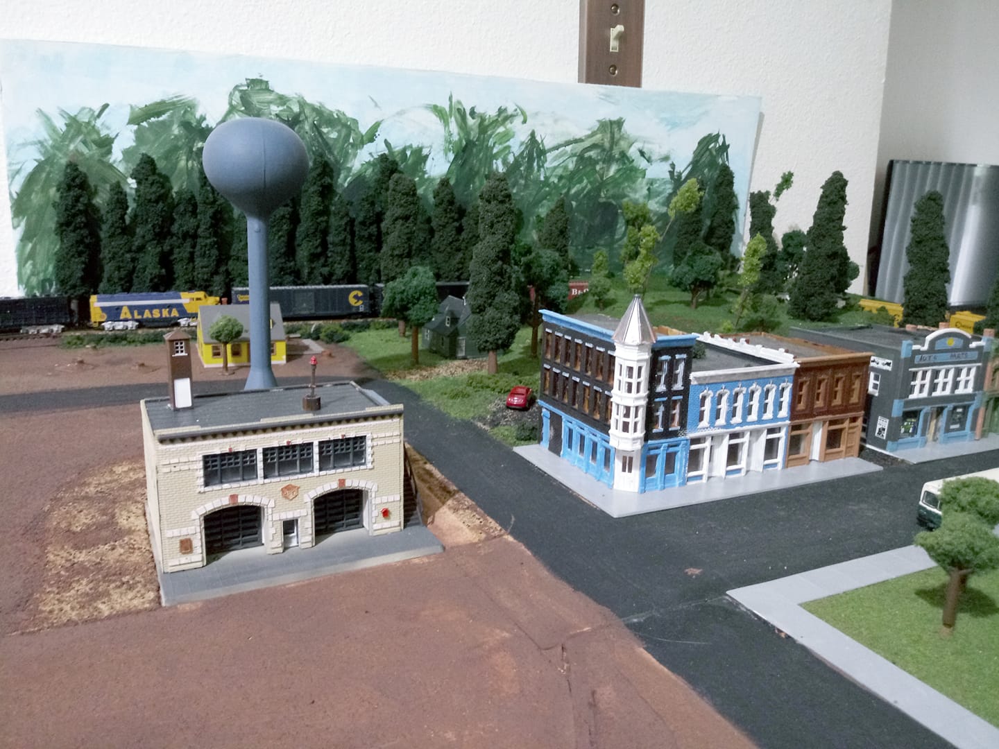 This small town on Jason Minier’s HO railroad is really starting to take shape. In addition to installing trees, roads, and scenery, Jason built several Walthers Cornerstone kits, including a Modern Water Tower, Merchant’s Row II, and a couple Cape Cod Houses. He also built a Life-Like Hampden Fire Engine House to serve his town’s volunteer fire department.
