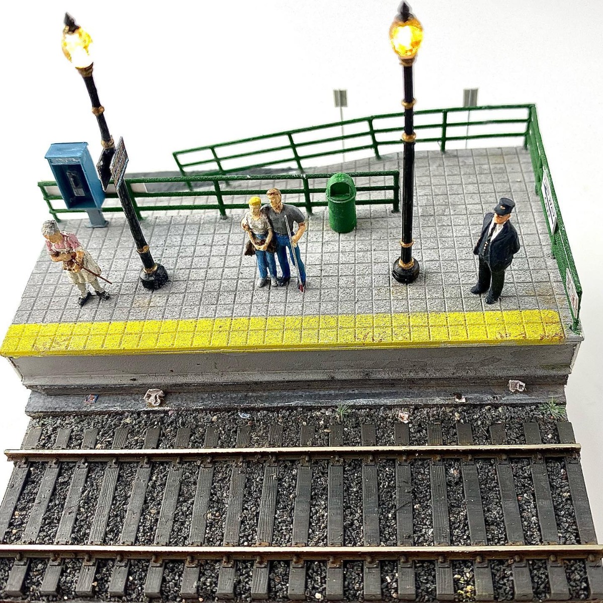 Great modelers often have the subtle eye of a fine artist, as exemplified in this micro-diorama created by Mountain Goat Models. With details like working lights, unique figures, and even crumpled up trash along the rails, this scene captures the mood of waiting at an urban station. Click on the arrows to see the diorama from multiple angles.