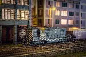 While the rest of the city may have quieted down, there's no rest for the railroad. The humid night air is filled with stop-and-go sounds as a GP7 digs in to move another cut of cars in this scene by @santafemodelrailroad.