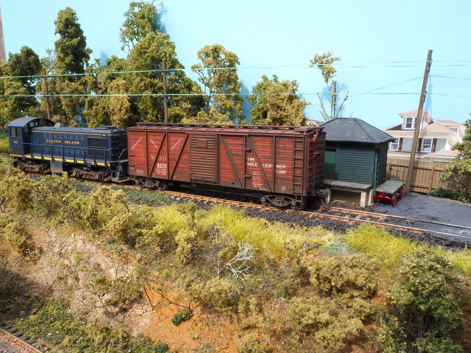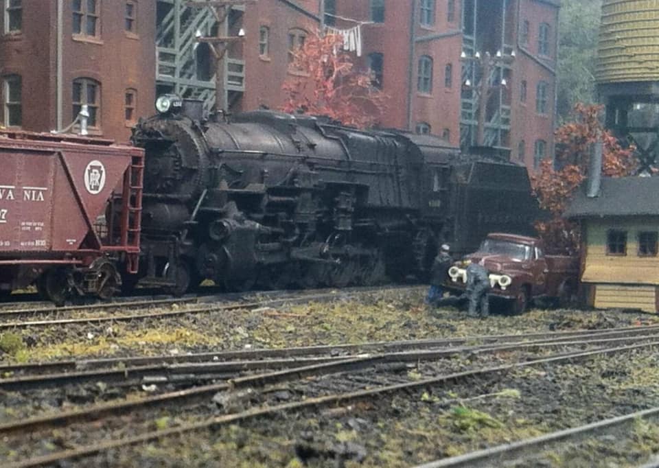 The 1950s weren’t just a steam-to-diesel transition era, other parts of the railroad were changing as well. These were among the last years when one could find wood boxcars in regular service. Marc Pitanza added some excellent weathering effects to the diesel switcher and veteran outside braced boxcar in this classic scene.