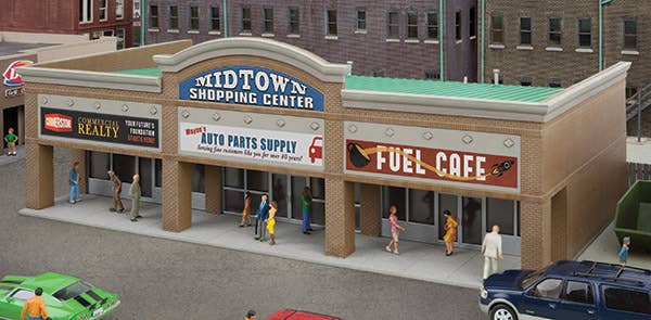 • Three stores in one compact structure - use alone or combine kits to model a typical strip mall