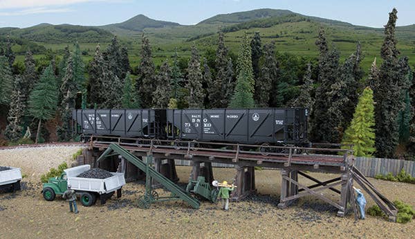 • Detailed trestle with supports, abutment, railing & walkway, and bulkheads to build optional below-track storage bins