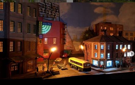 Urban canyons, heavy industry and a busy harbor offer 24-hour action on this model railroad built by poster @trainsanddioramas. Click on the white arrow to take a nighttime tour of this exceptional layout. |