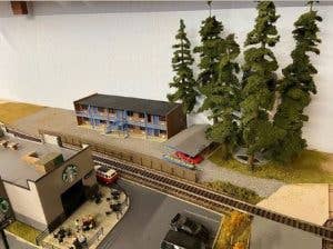 With a trackside Starbucks in close proximity, this quaint motel should prove a popular getaway for railfans. Poster @twinlakeswesternHO built and painted the Walthers Cornerstone structure.