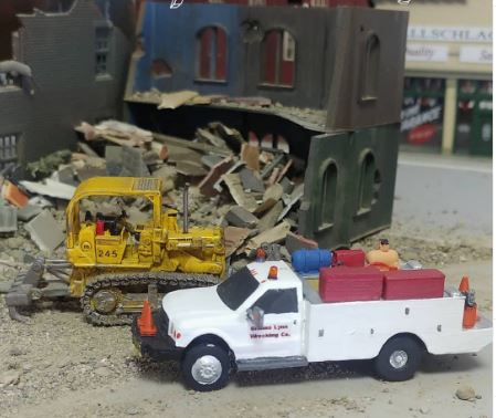 It’s the end of the line for this old building. Detailed debris, heavy equipment, and a custom truck bring this HO scale urban scene to life. Find more construction and heavy industry themed vignettes by following @gianna_lynn_wrecking_co.