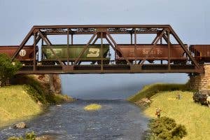 Real railroads might not like them, but it's hard to beat a model bridge. Not sure if the fish or mosquitos are biting, but this is a great spot for train-watching on Steve Williams' layout!